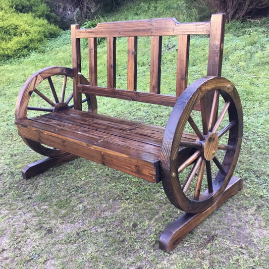 Outdoor Wooden Garden Bench Seat Wagon Wheel Chair
