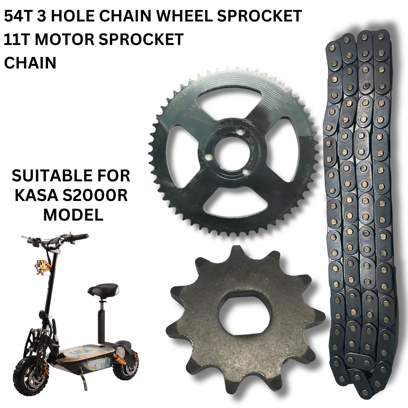 54T Rear Sprocket + 11T Motor Sprocket + Chain Compatible With 2000W KASA Electric Off-Road Scooter
