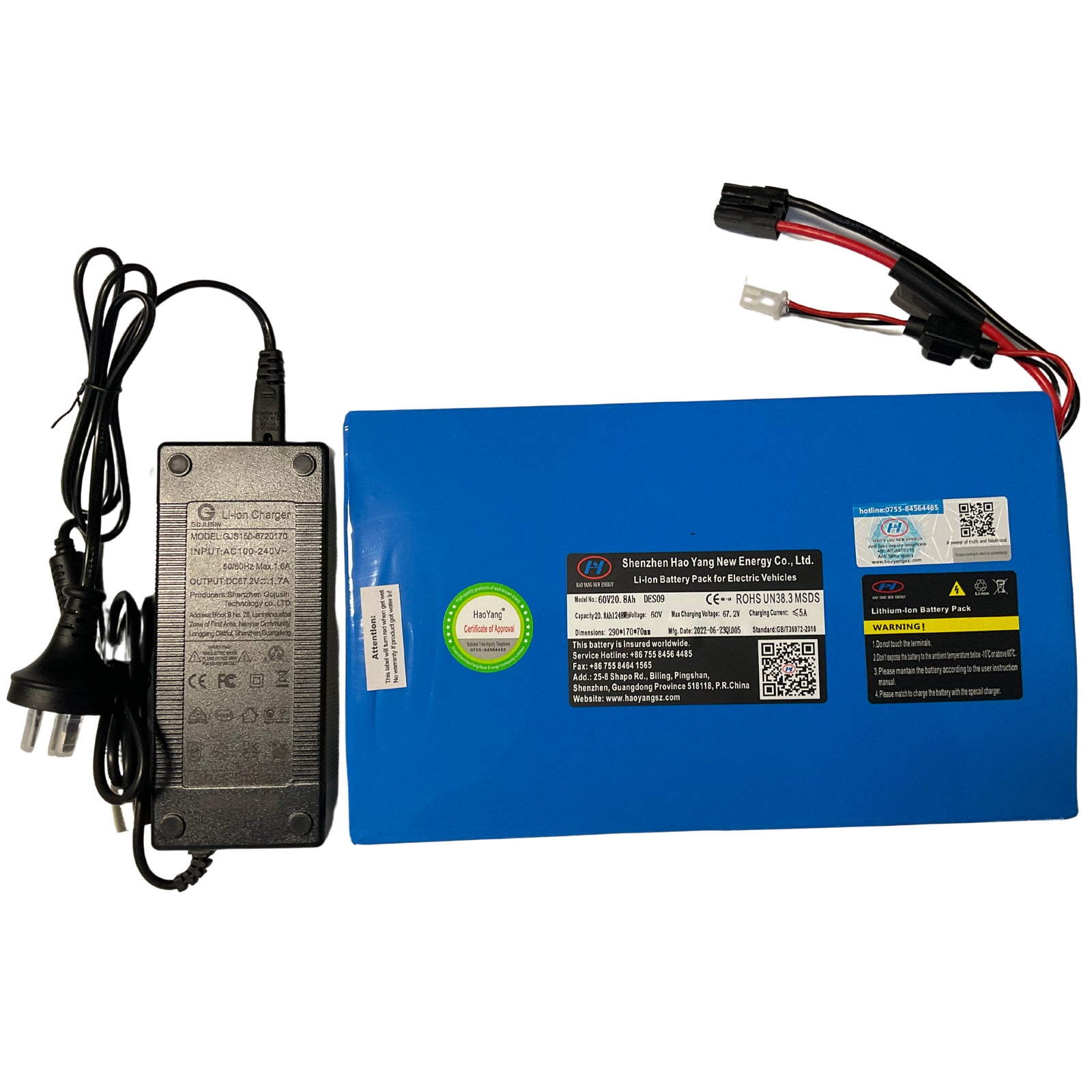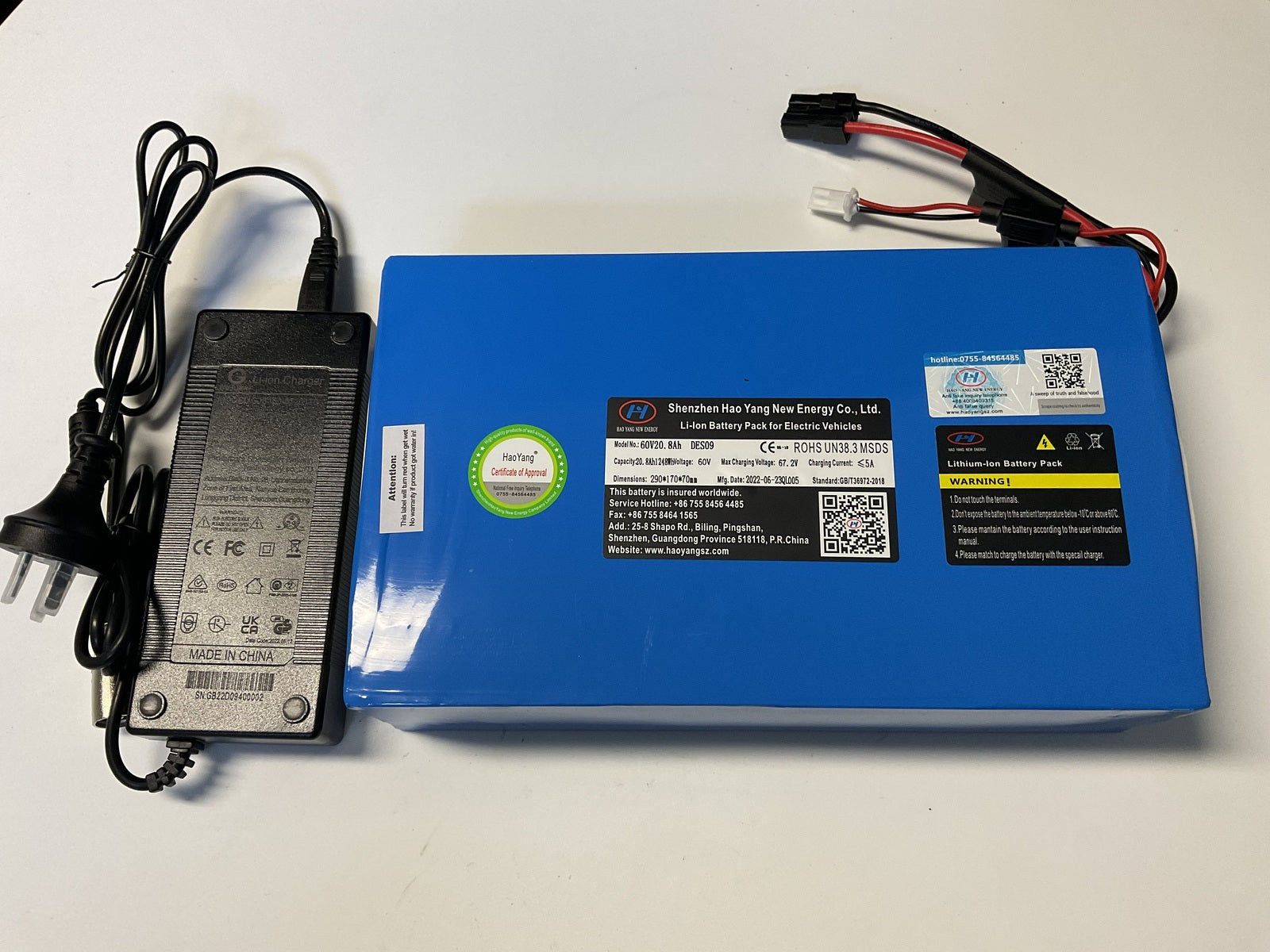 60V 20Ah Lithium Battery Pack (High-Quality). Can be used to upgrade the existing Lithium packs to increase range. Also can install in any Lead acid scooter to increase lifespan, and range and decrease charge times.