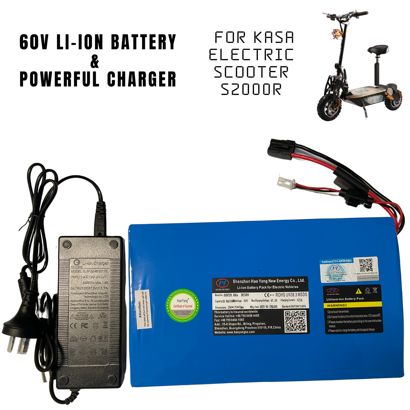 60V 20Ah Lithium Ion Battery Power charger For KASA 2000W Electric Scooter S2000R