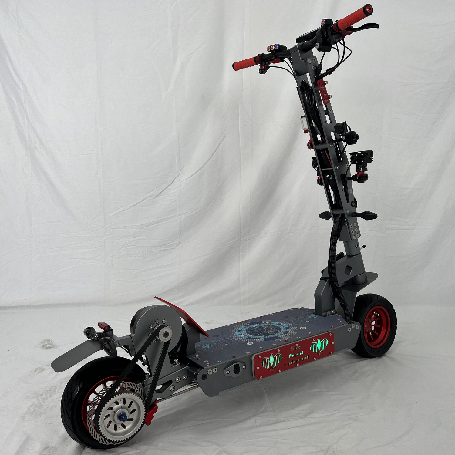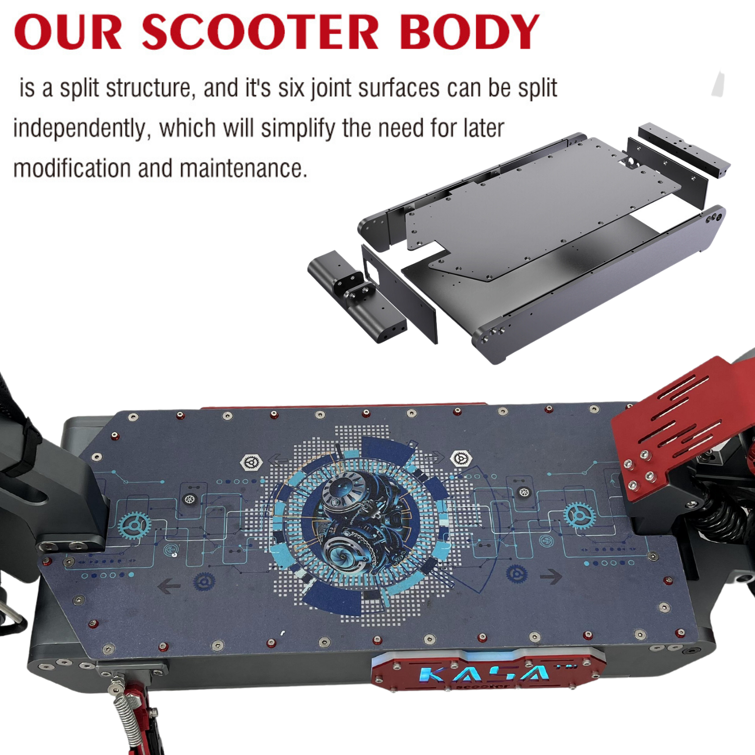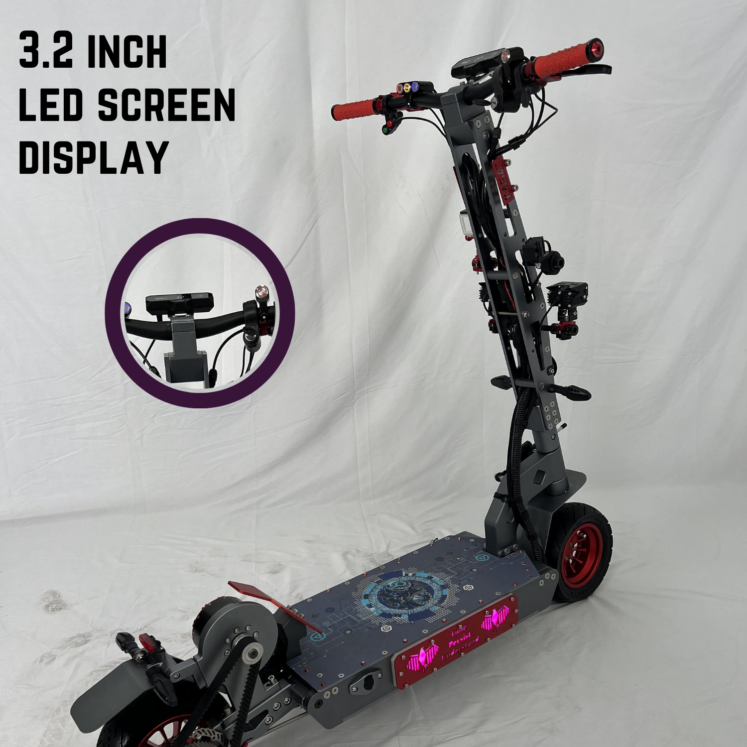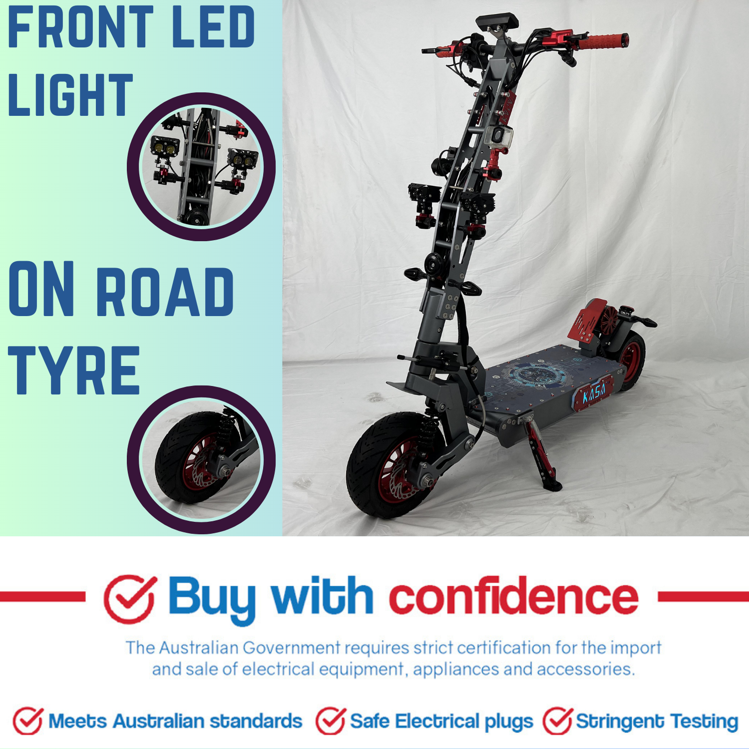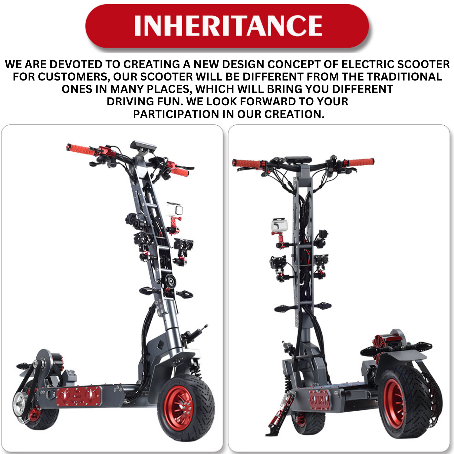 All the power is now in your hands with the KASA Electric Scooter. The 11" front and rear tire delivers a smoother ride on uneven terrain. The high-torque Power Core hub 12000W Motor delivers 60km/h top speeds up to 72V/40AH rechargeable battery provides up to 80kilometers of uninterrupted ride time on a single charge and up to 150kg max load weight the rear-wheel drive make the KASA electric scooter a safe, solid, and smooth ride to bring out your fun side.