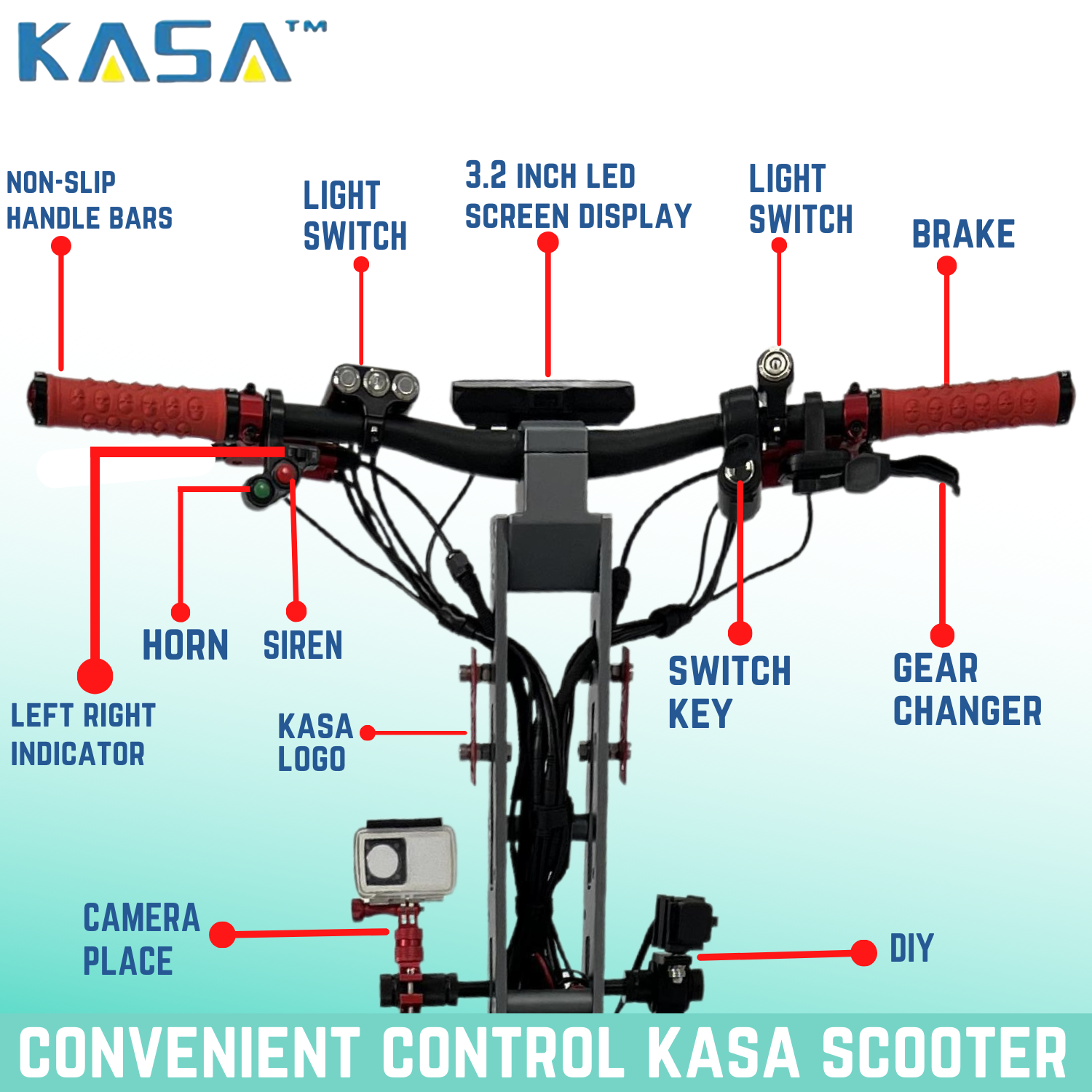 Multifunctional LED Console - KASA smart 3.2 inch LED console can show speed, battery life, speed mode and cruise control, and is clearly visible in sunlight. Push Assist Mode brings up great convenience for pushing the scooter while walking or when it is low battery. LED headlight, rear braking light and pedal light ensure safe night commuting and more features, etc.