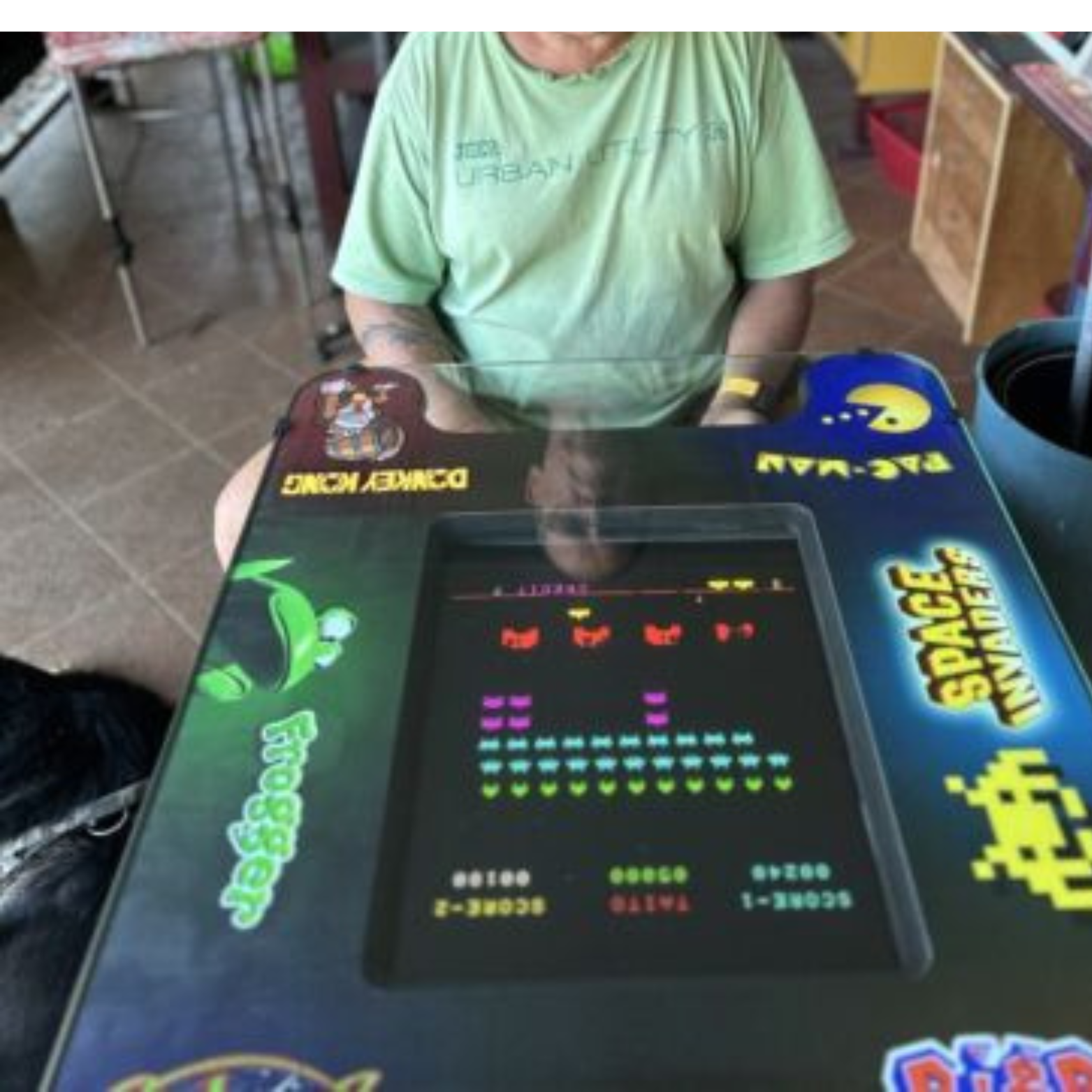 Here we have our new Samsung display tabletop arcade machine. This machine accepts Australian gold coins ($2 & $1) which are stored in a hidden locked draw, it also has a free credit button for personal use. With the machine you get a wide range of classic games (412 games) like Donkey Kong and Space Invaders (See images above for full list).