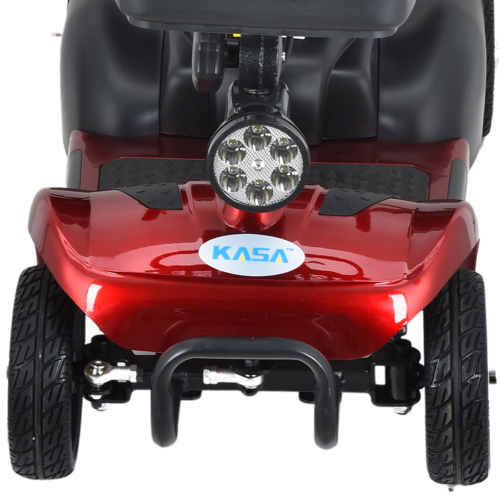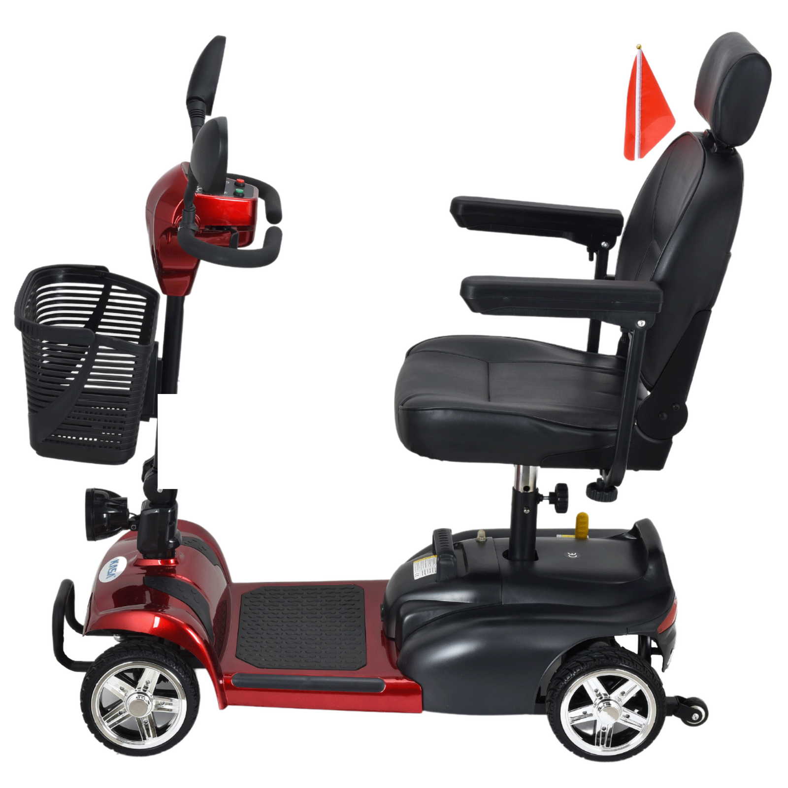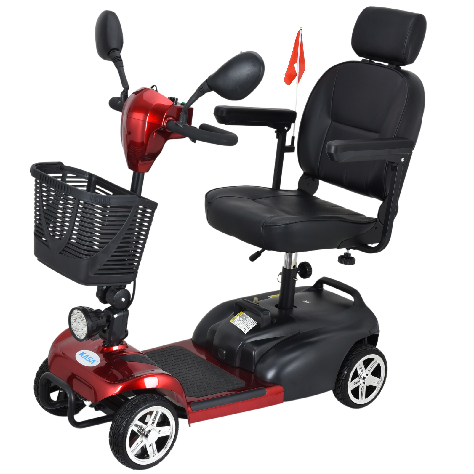 The KASA 4-wheel mobility scooter provides a convenient and comfortable mobility solution for users. With its compact size, it can easily maneuver over smooth indoor and outdoor surfaces, such as concrete, pavement, tile, and carpeting. The scooter is also equipped with a front-mounted storage basket for carrying daily essentials.