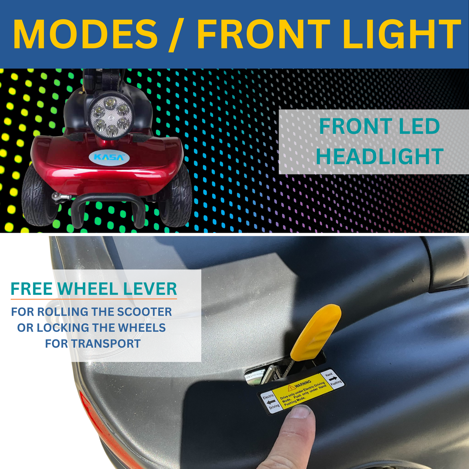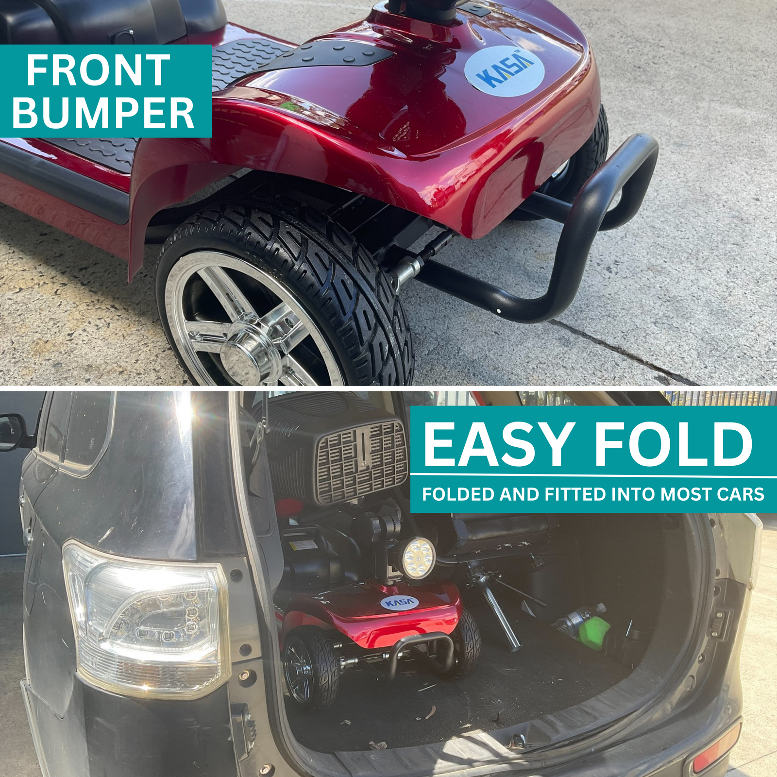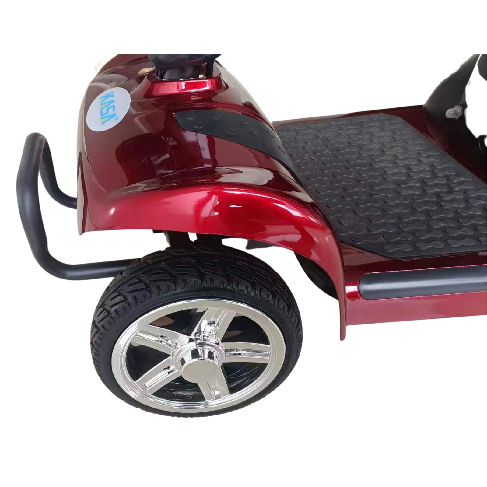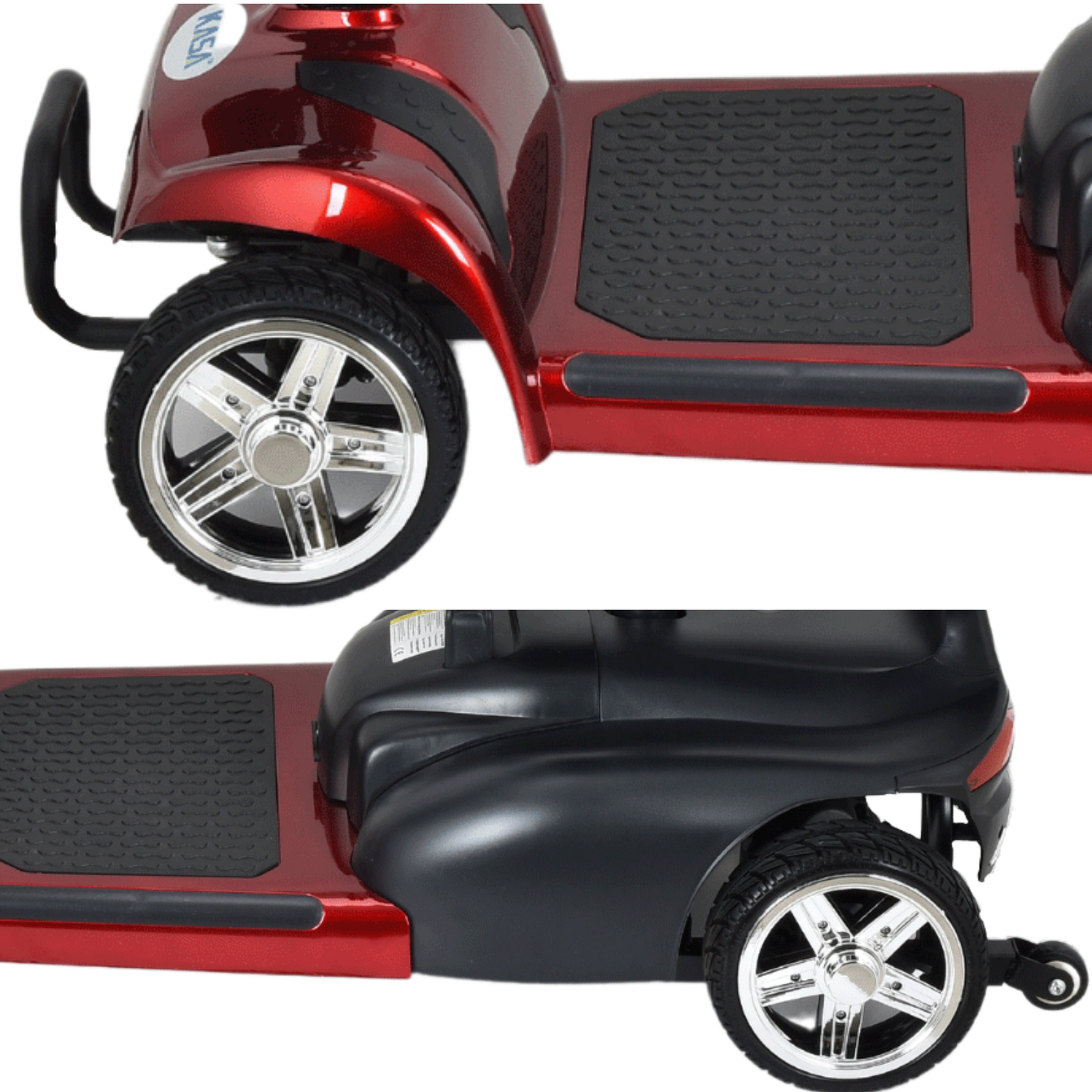 When not in use, the KASA mobility scooter can be easily disassembled, making it simple to transport in standard-size vehicles. The folding tiller and removable seat ensure that each section is easily portable.