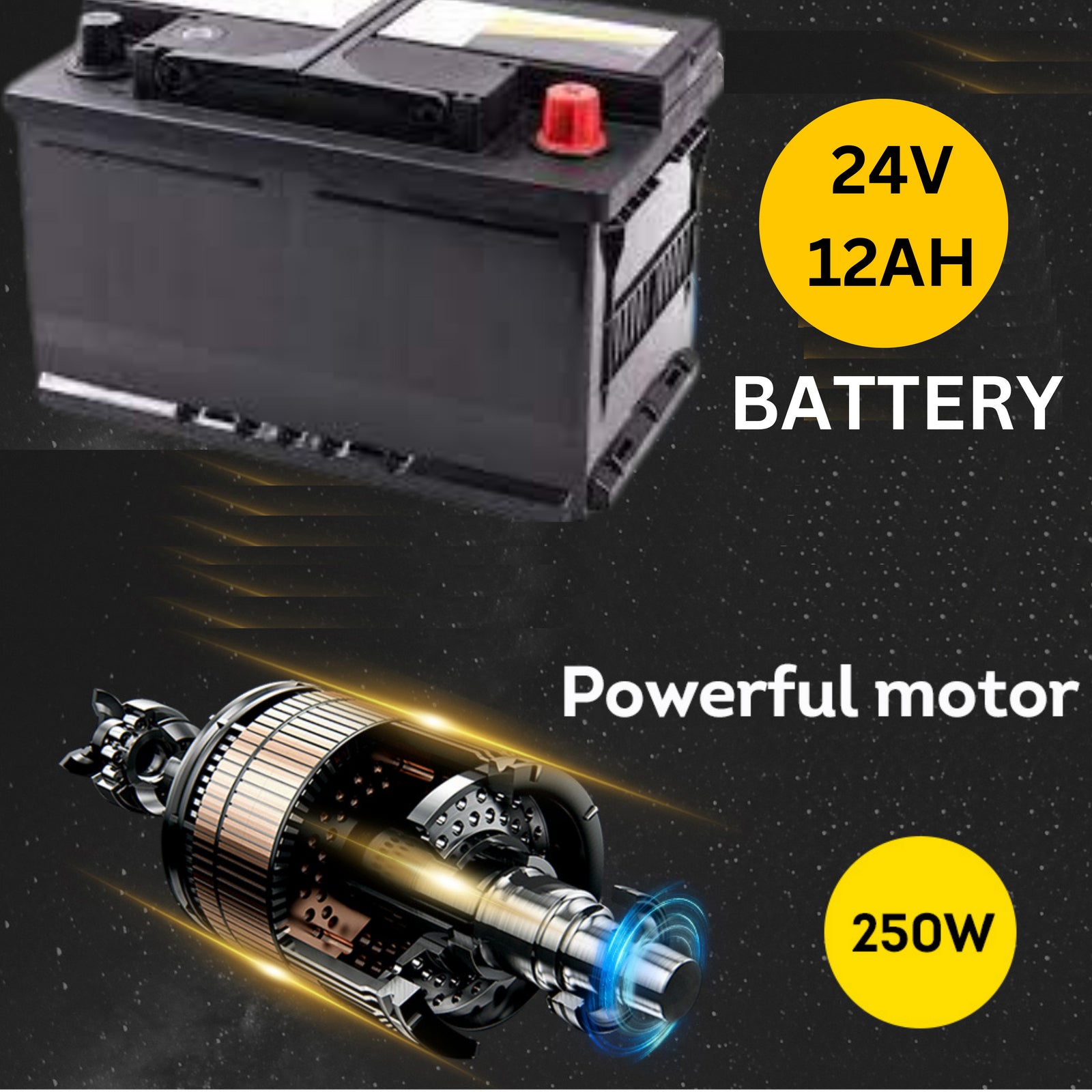 - Motor: 24V 250W