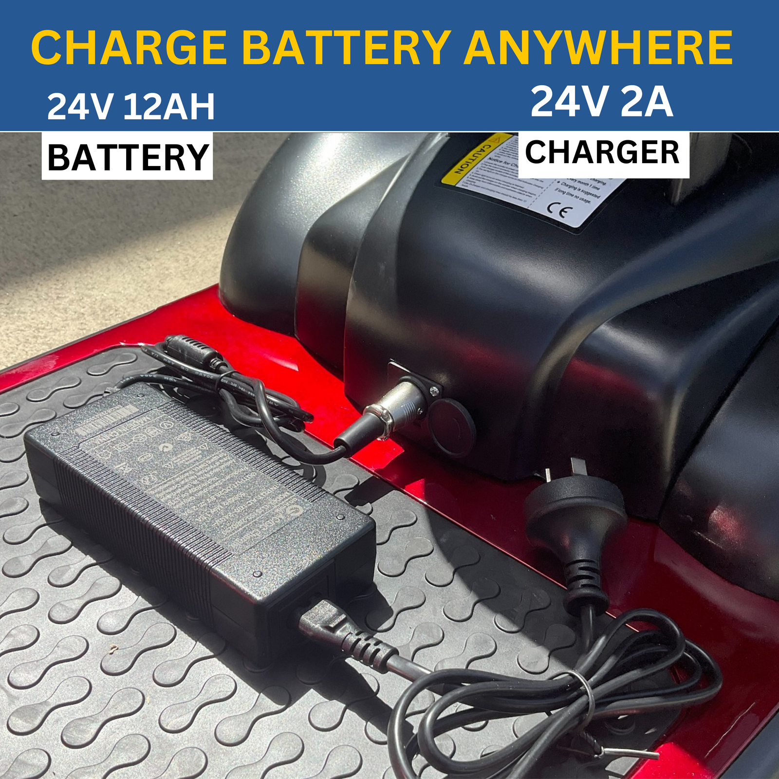 Warning: Always unplug the charger from the wall and the battery/electric mobility scooter when fully charged.
