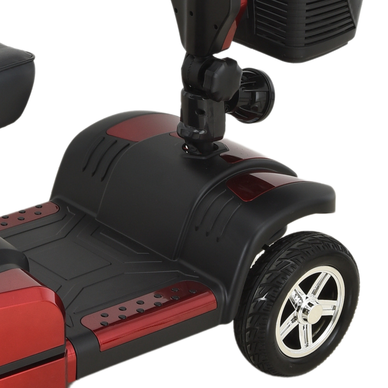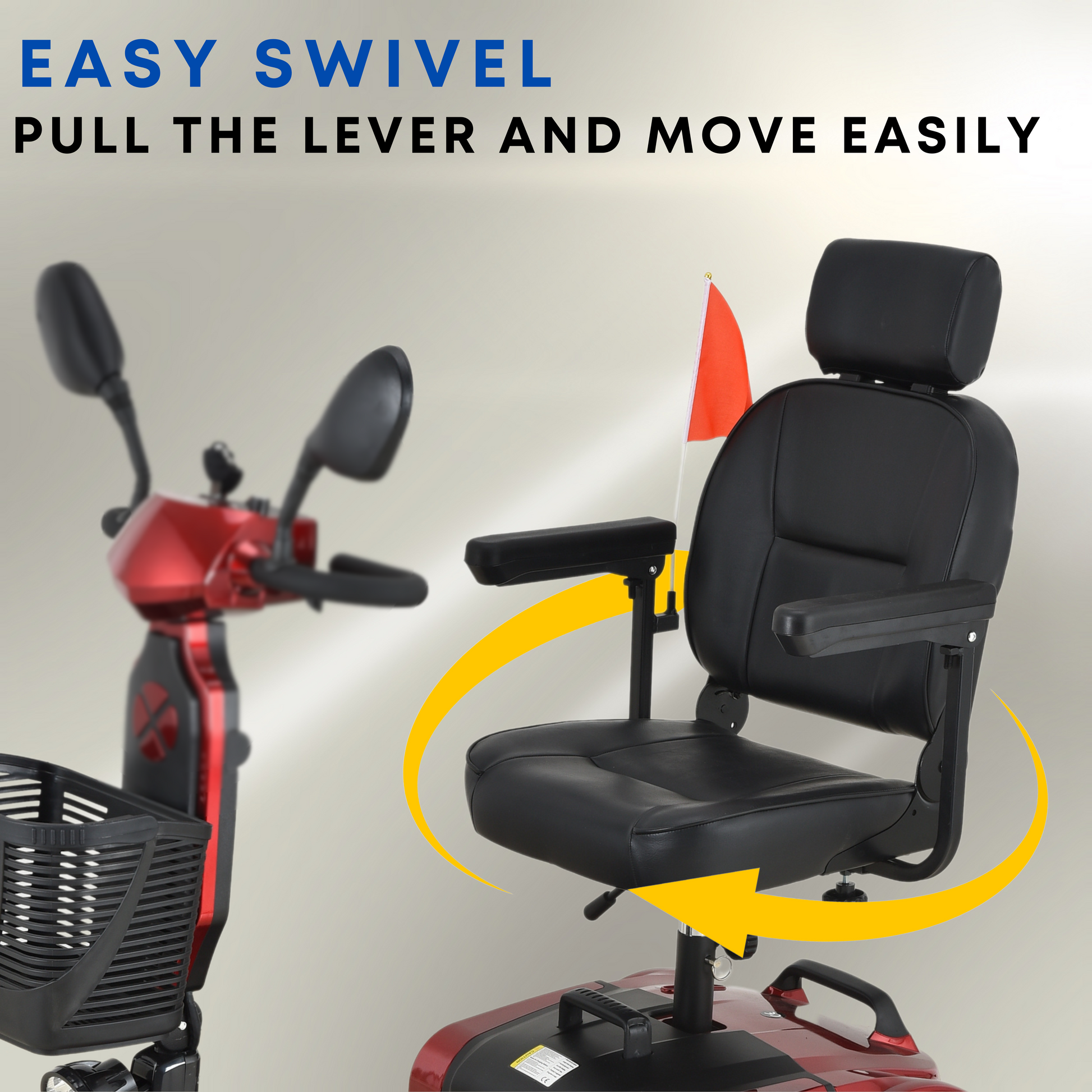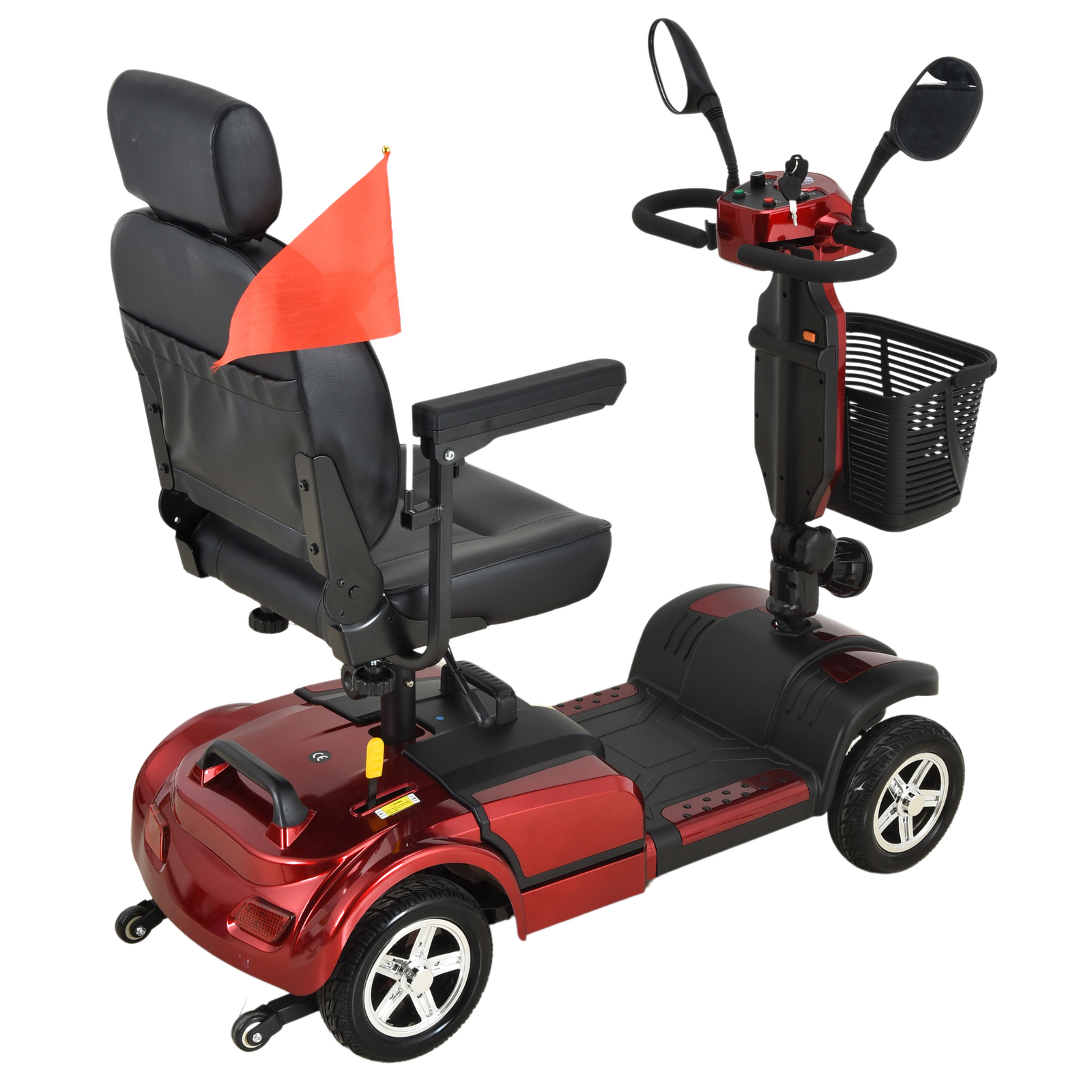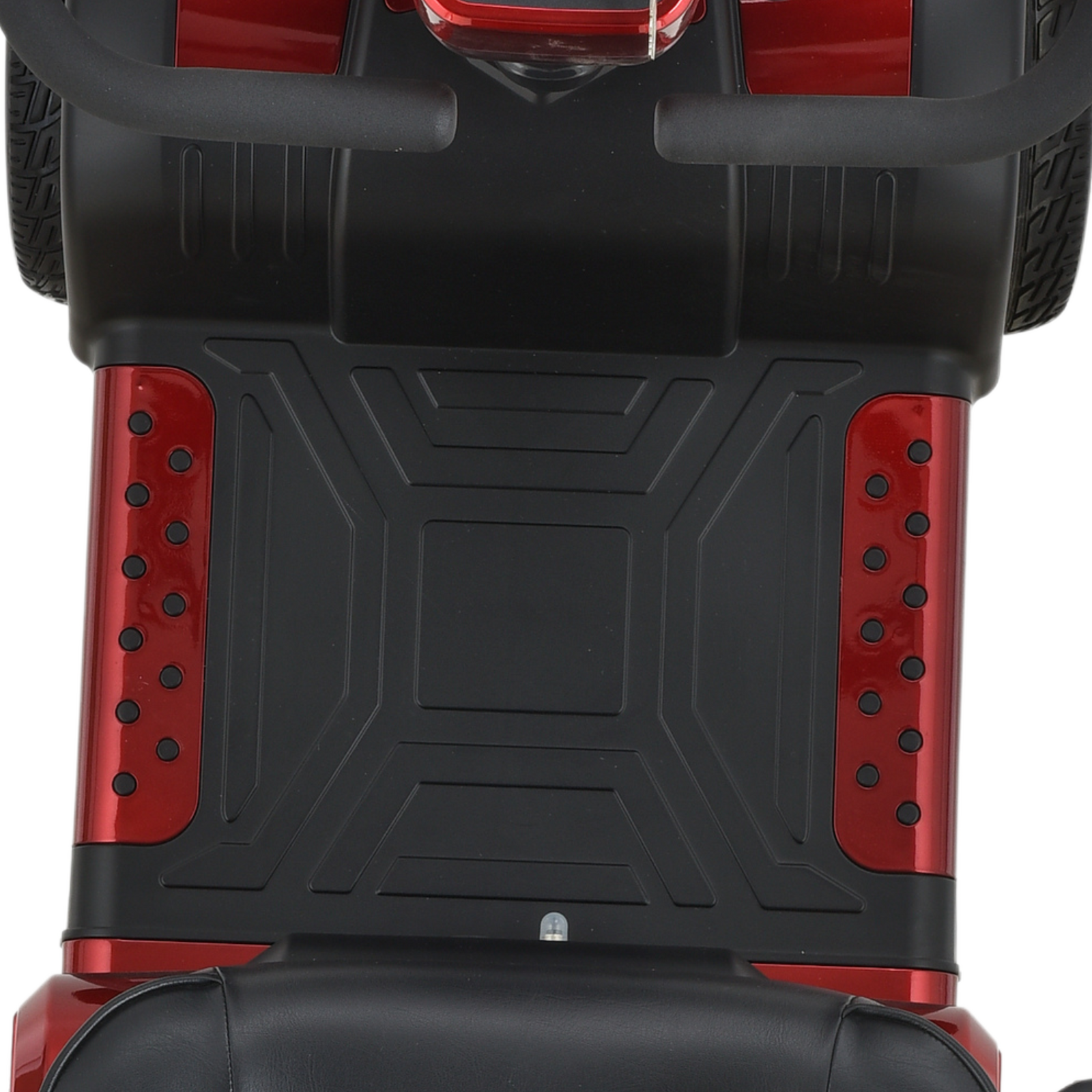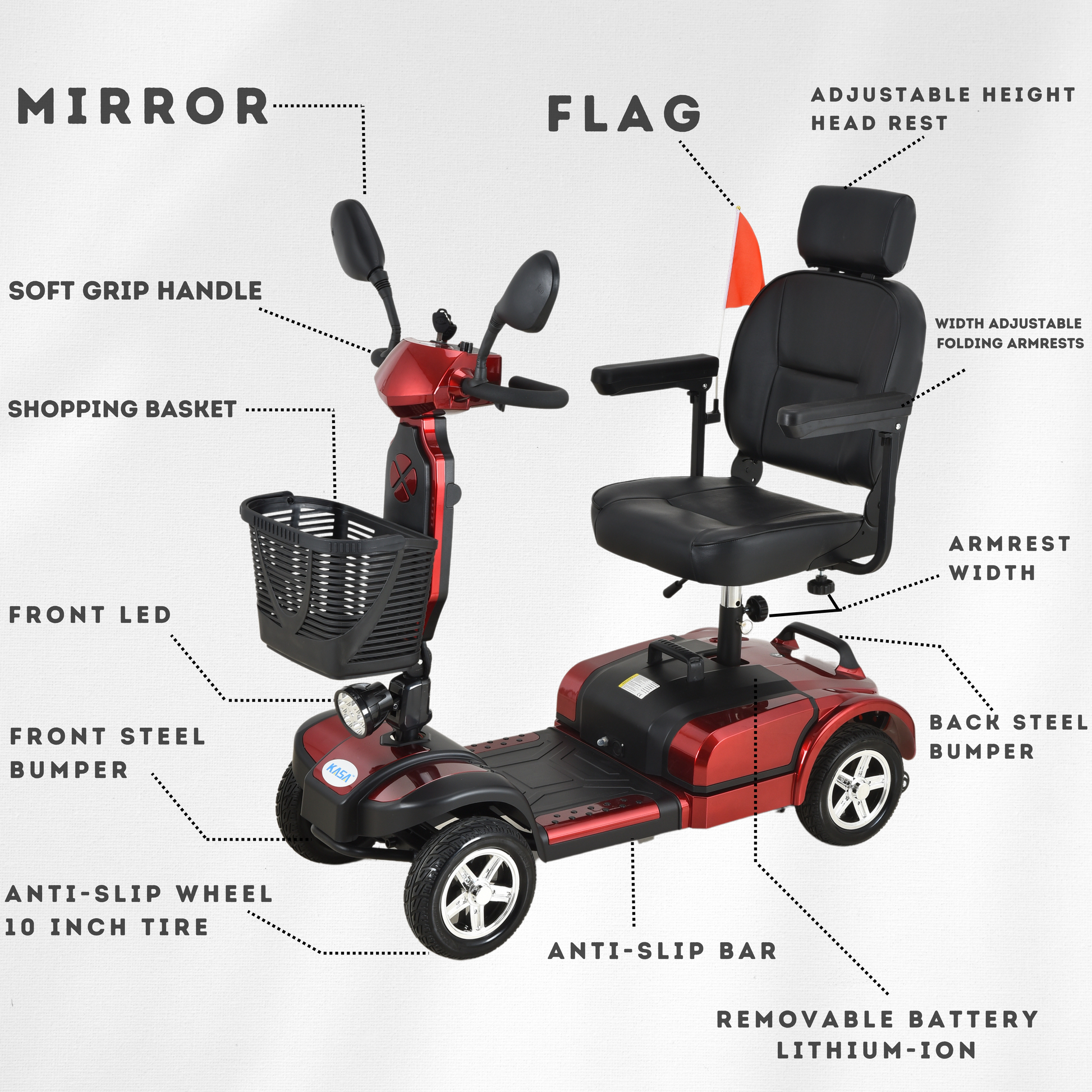 The KASA 4-wheel mobility scooter provides a convenient and comfortable mobility solution for users. With its compact size, it can easily maneuver over smooth indoor and outdoor surfaces, such as concrete, pavement, tile, and carpeting. The scooter is also equipped with a front-mounted storage basket for carrying daily essentials.