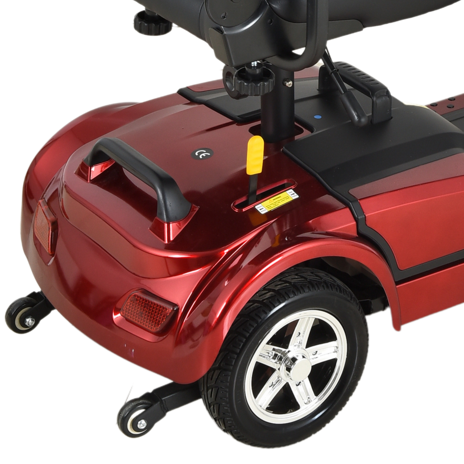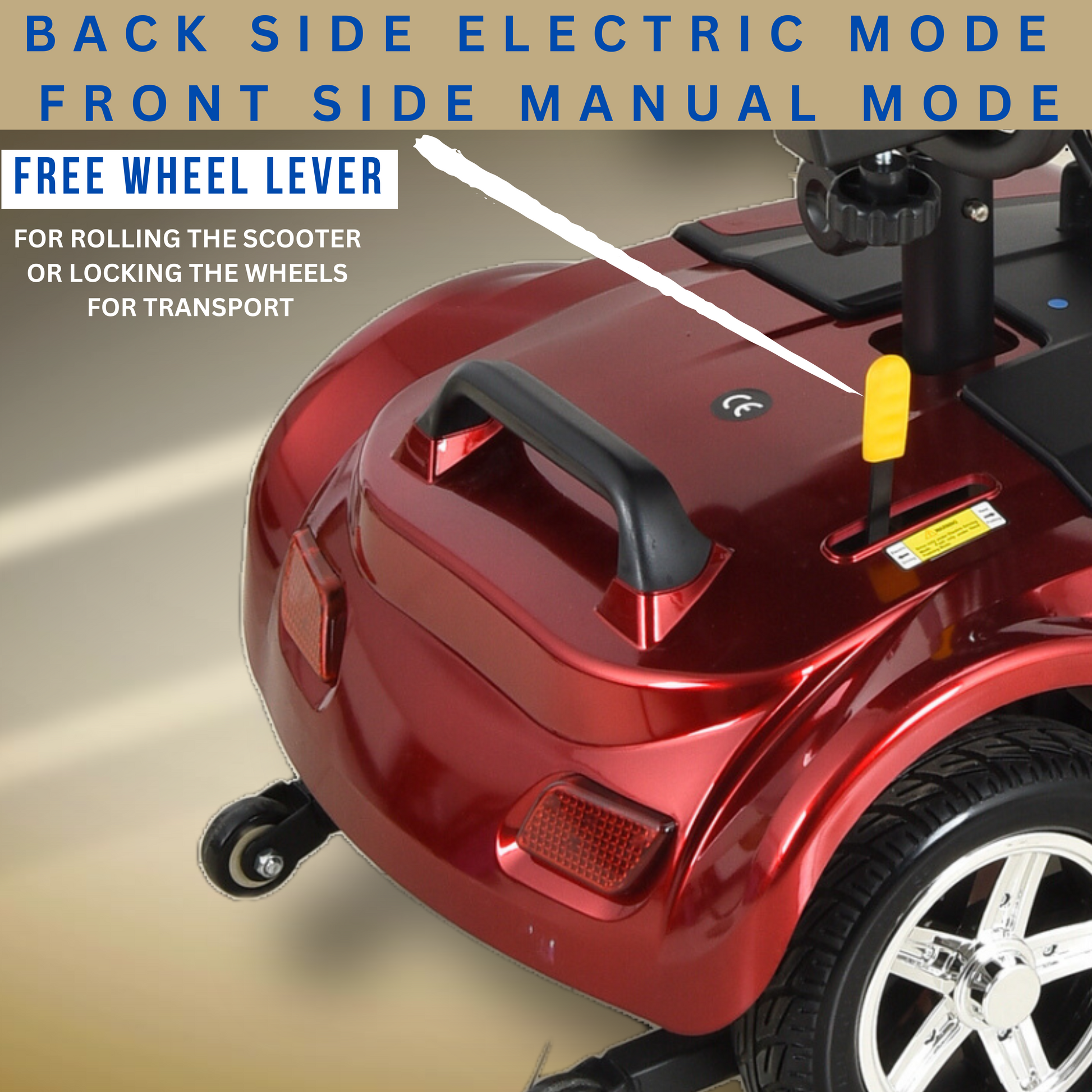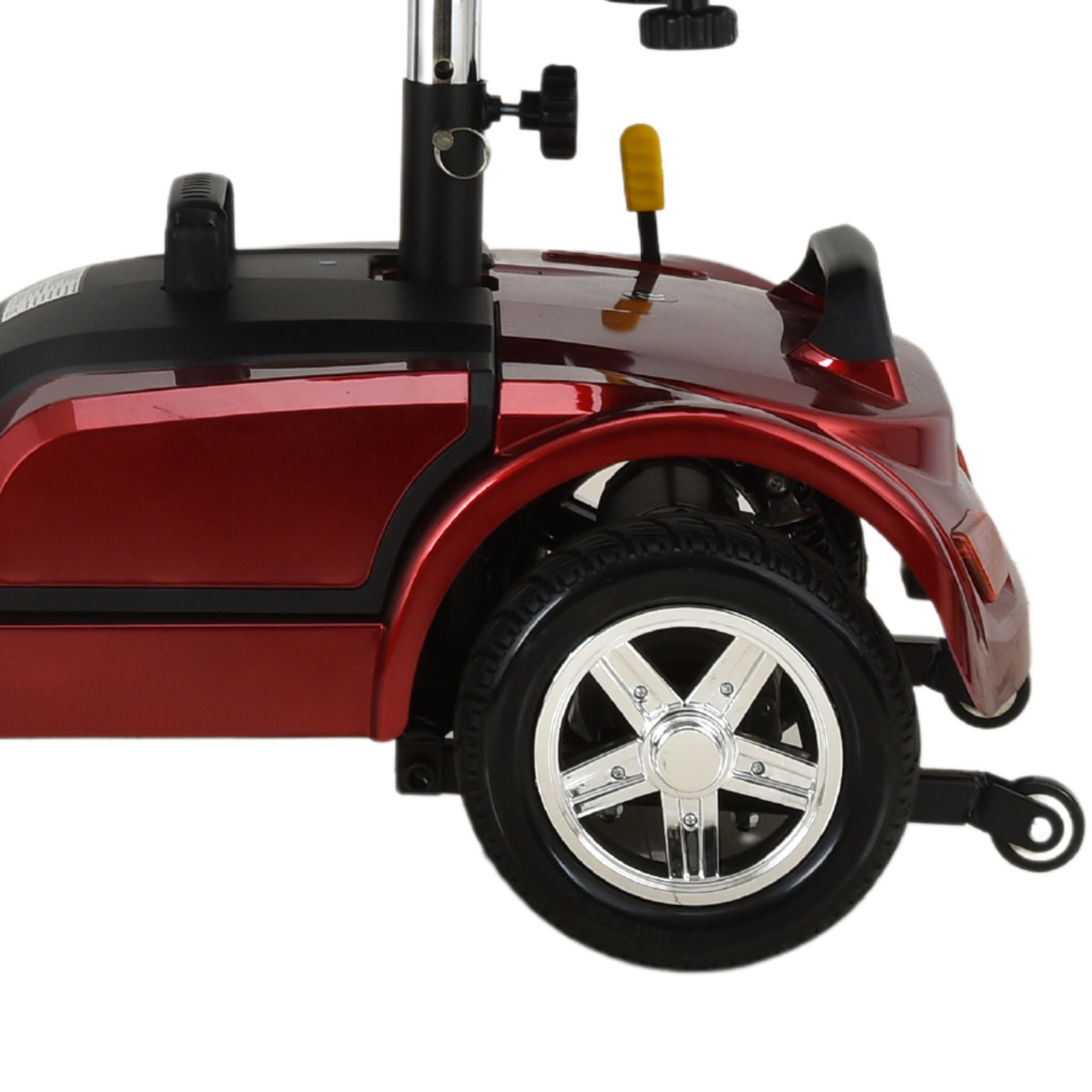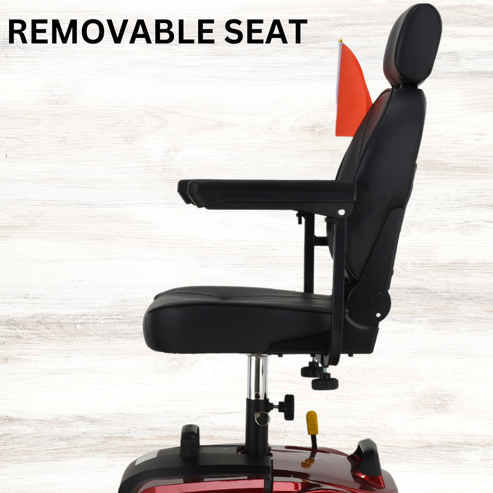 When not in use, the KASA mobility scooter can be easily disassembled, making it simple to transport in standard-size vehicles. The folding tiller and removable seat ensure that each section is easily portable.