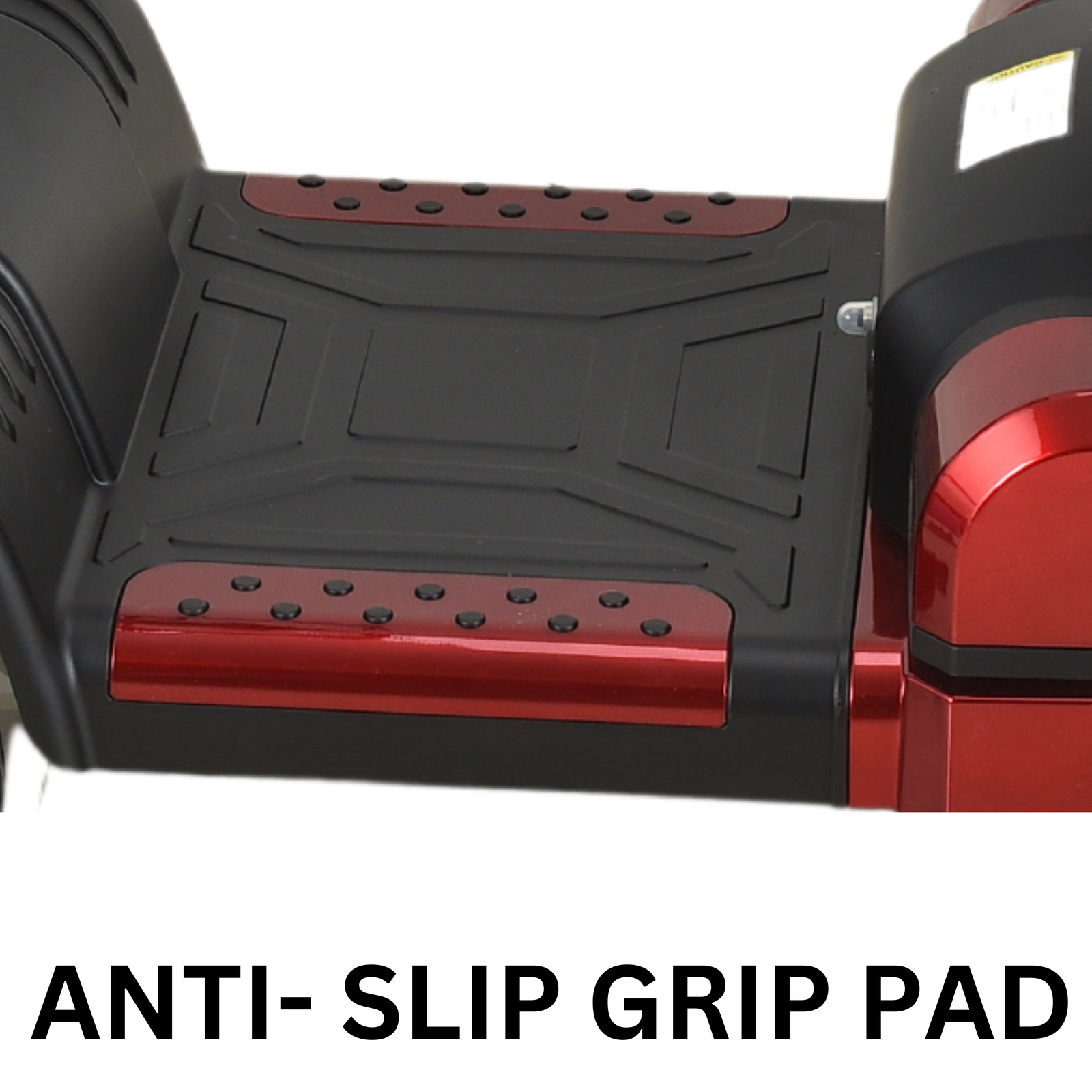 The scooter is designed to support up to 120 KG, ensuring a safe and stable ride for users. Its 10” flat-free tires are non-marking and engineered for durability and safety, providing users with peace of mind.