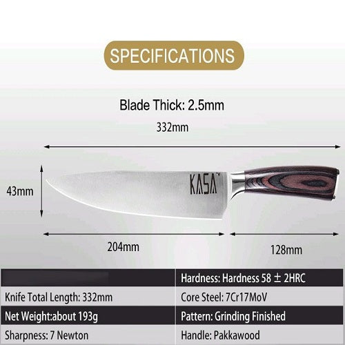 KASA is a professional and technical manufacturer of kitchen knives. As a manufacturer of kitchen knives, we provide quality products and remarkable service in an economical price. Our shop mainly sells Chef knives, Bread knives, Slicing knives, Utility knives, kitchen knife sets, which are great gifts to your families and friends. With these high-quality knives, your kitchen will be more perfect!