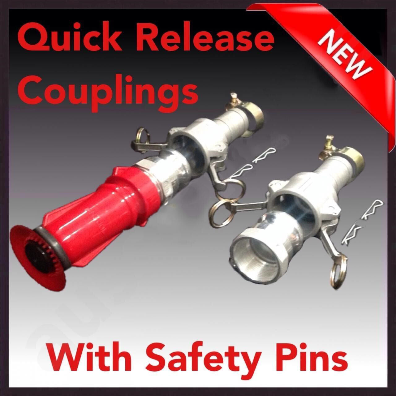Here it is! Genuine KASA 30m 1.5" Fire Fighting Lay Flat Hose complete with Quick Connect / Release Couplings, Safety Lock Pins, and Adjustable Fire Nozzle.