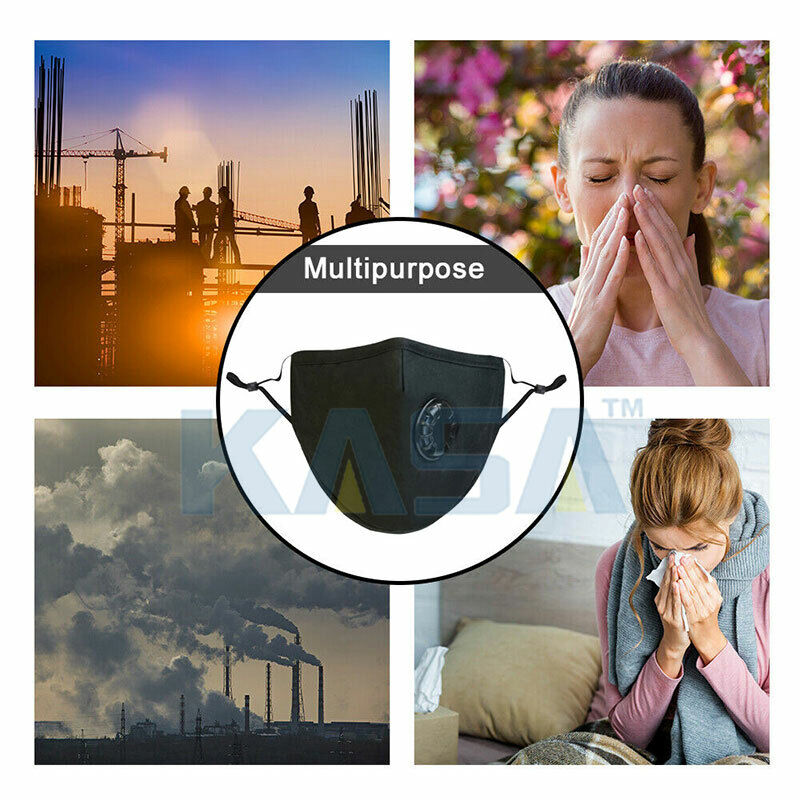 KASA Reusable Face Mask Washable Anti Air Pollution cotton Fabric with 2 Free Filters 1X Activated Carbon Filter Anti Dust Earloop Mask Breathable Cotton
