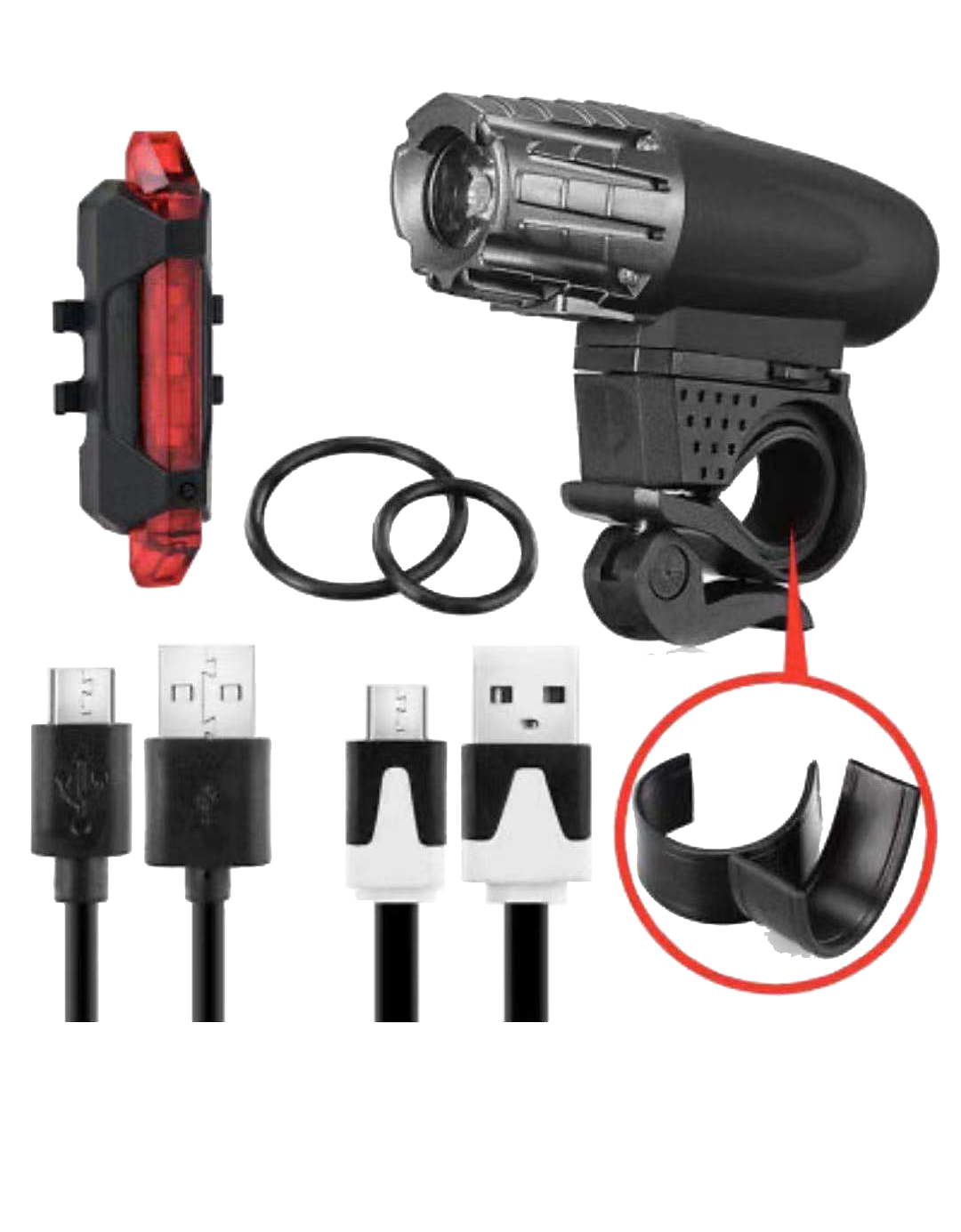 - Bike Rechargeable LED (Black Headlight + White Taillight)