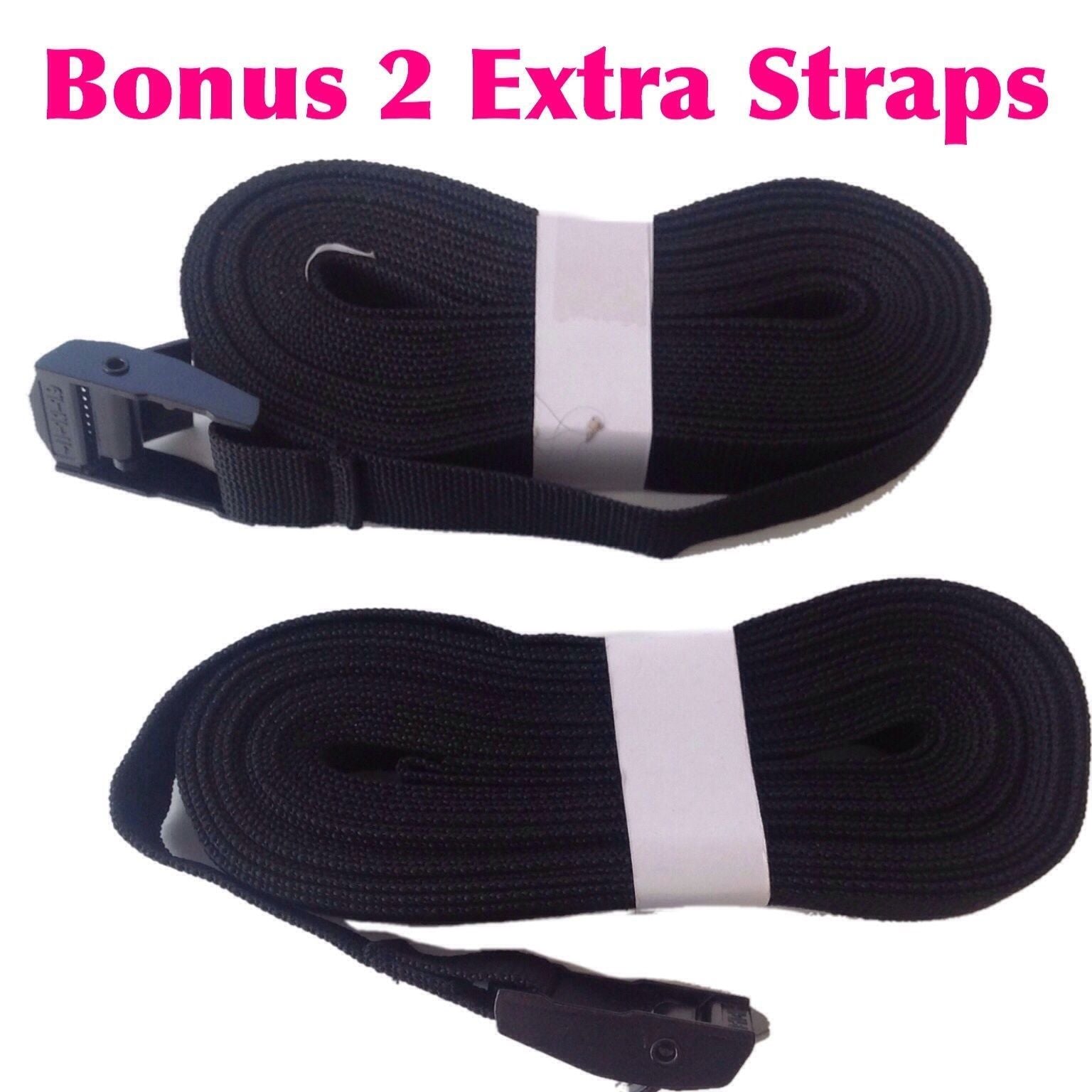 - Includes 2 extra securing straps with metal cam buckle straps