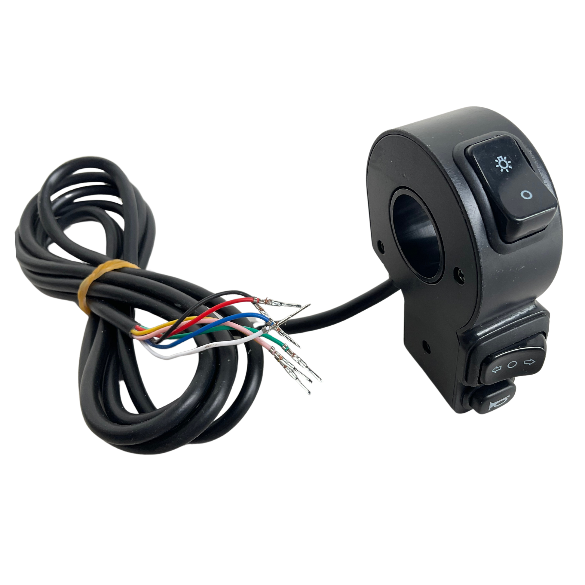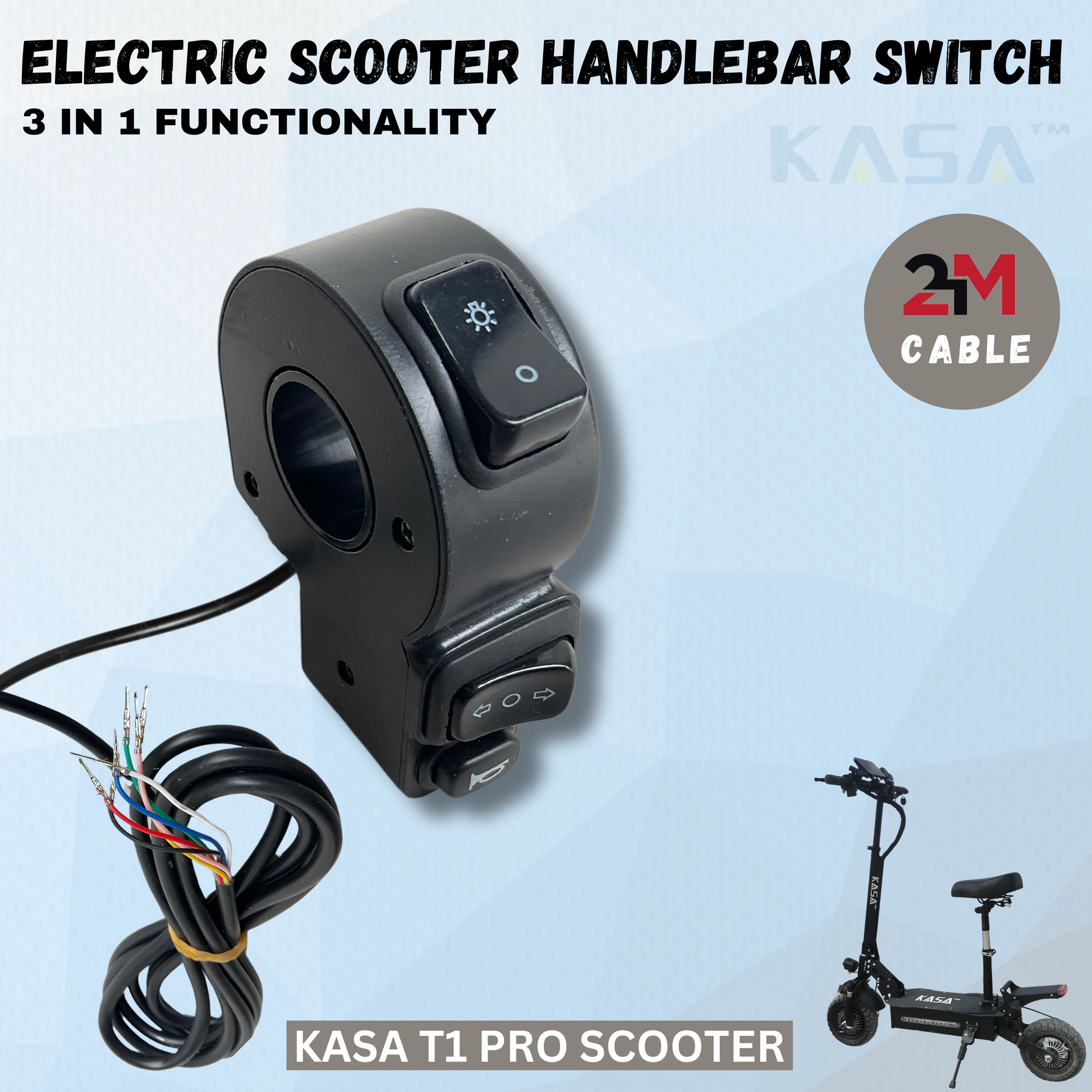 This high-quality replacement handlebar switch is specifically designed for the Kasa T1 Pro Electric Scooter, offering seamless control over essential scooter functions. With a user-friendly interface, this switch allows riders to easily operate the front lights, rear left and right indicators, and horn, enhancing safety and convenience while riding. The switch features a robust 2-meter-long cable for flexible installation and reliable performance.